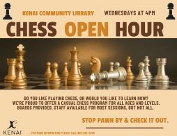 Do you like playing chess, or would you like to learn how? We’re proud to offer a casual chess program for all ages and levels. Boards provided.