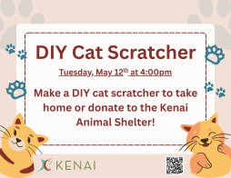 Stop by the library to make a cat scratcher to take home or donate to the Kenai Animal Shelter!