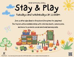 Join us after Wee Read or Preschool Storytime for playtime! The toy bin will be available, along with coloring sheets, sensory bins, and more to promote social emotional learning skills.