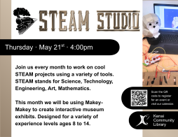This month we will be using Makey-Makey to create interactive museum exhibits. Designed for a variety of experience levels ages 8 to 14.