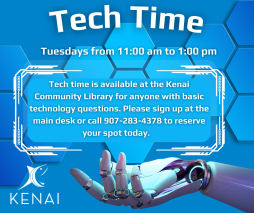 Tech time is available at the Kenai Community Library for anyone with basic technology questions. We can help you with: