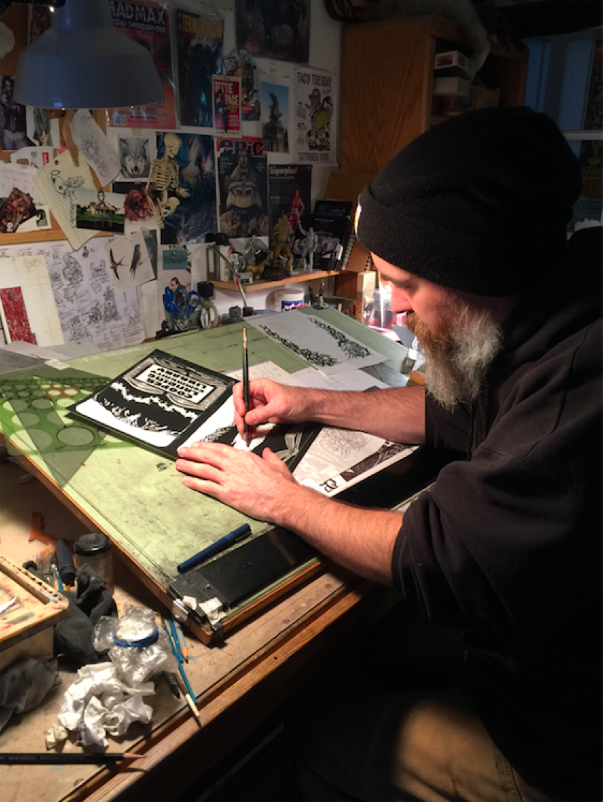 “The scratchboard has a clay backer on it, and it’s painted with ink, and then you go in and scratch out the parts you don’t want, basically,” Tony said.